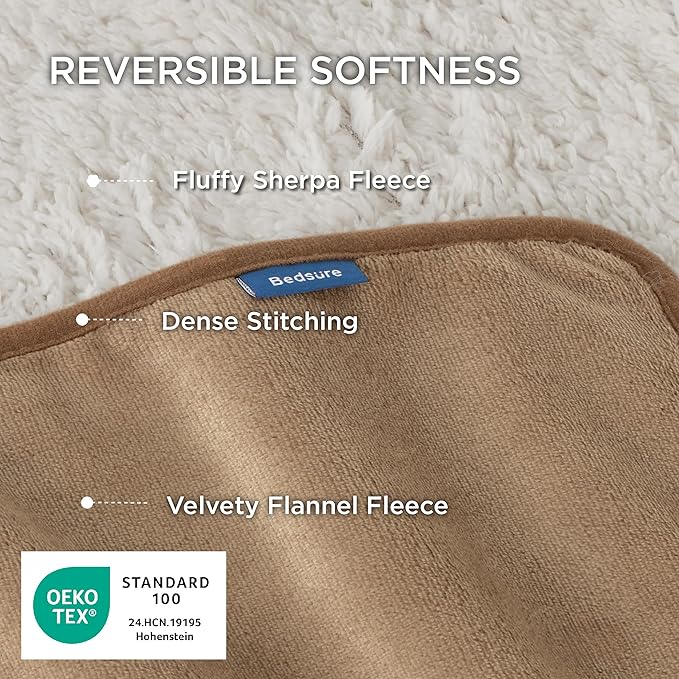 Bedsure Waterproof Blanket for Bed - Sherpa Fleece Waterproof Dog Blankets for Large Dogs, Pet Blankets for Bed/Couch/Dog Crate, Soft Plush Reversible Furniture Protector, Queen Size, 90"x86", Camel