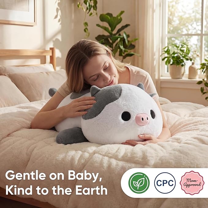 - Perfect Gift Choice - This 23-inch weighted cow plush makes a wonderful gift for birthdays, holidays, or special occasions. A delightful present for children, friends, and loved ones who enjoy cute and cuddly plush toys.