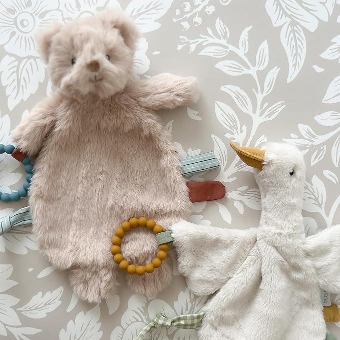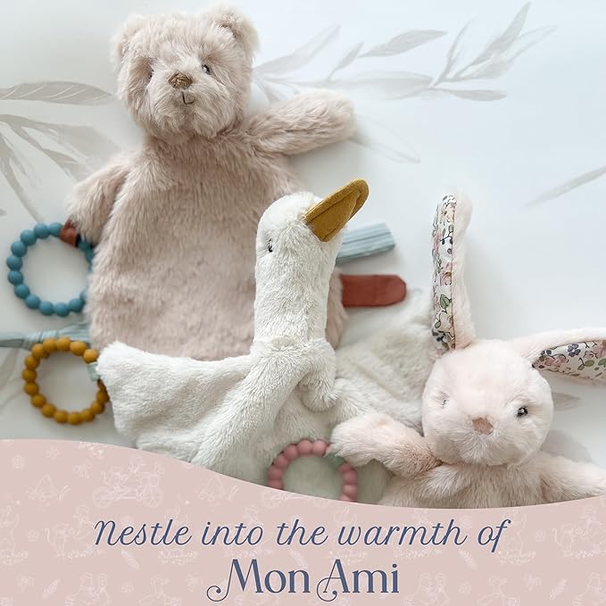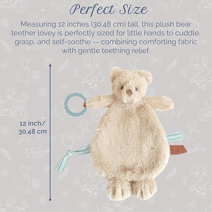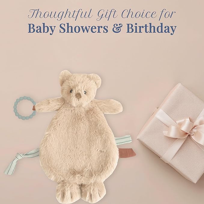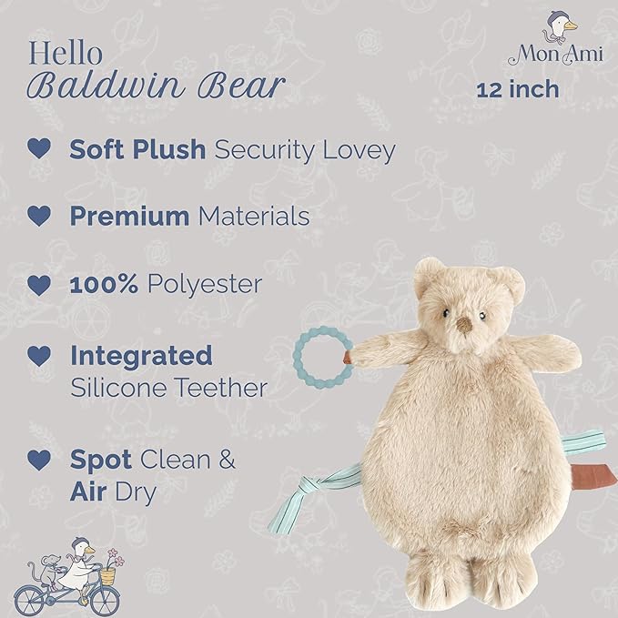 MON AMI Baldwin Bear Security Blanket with Silicone Teether | 12-Inch Plush Lovey for Babies | Soothing Sensory Snuggle Toy | Perfect Newborn Essential for Birthdays & Baby Showers